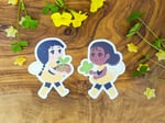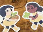 A couple cute bee fairies! One carrying an acorn top that she's using as a little planter, and the other having found a four leaf clover!