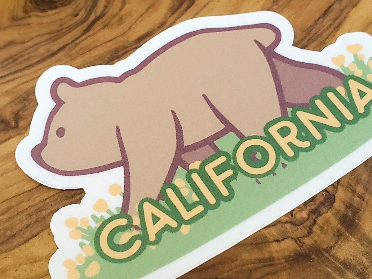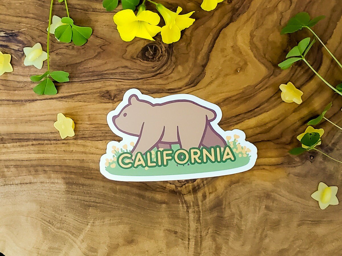 This sticker has the California grizzly bear, which is the state animal! Around it are California golden poppies, which is the state flower!