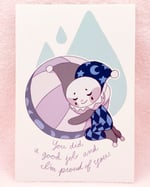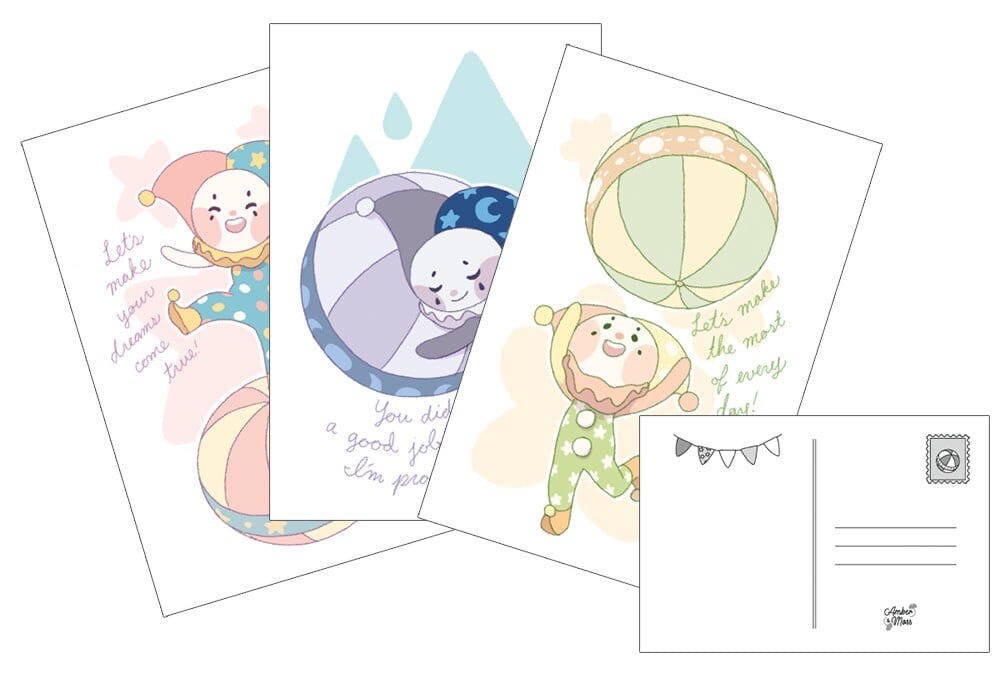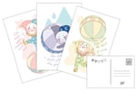 Each postcard is 4" x 6" or 10.16 x 15.24 cm. They're printed on nice quality thick 16 pt cardstock, and have a matte coating on the image side. The back side is uncoated to make them easy to write on.