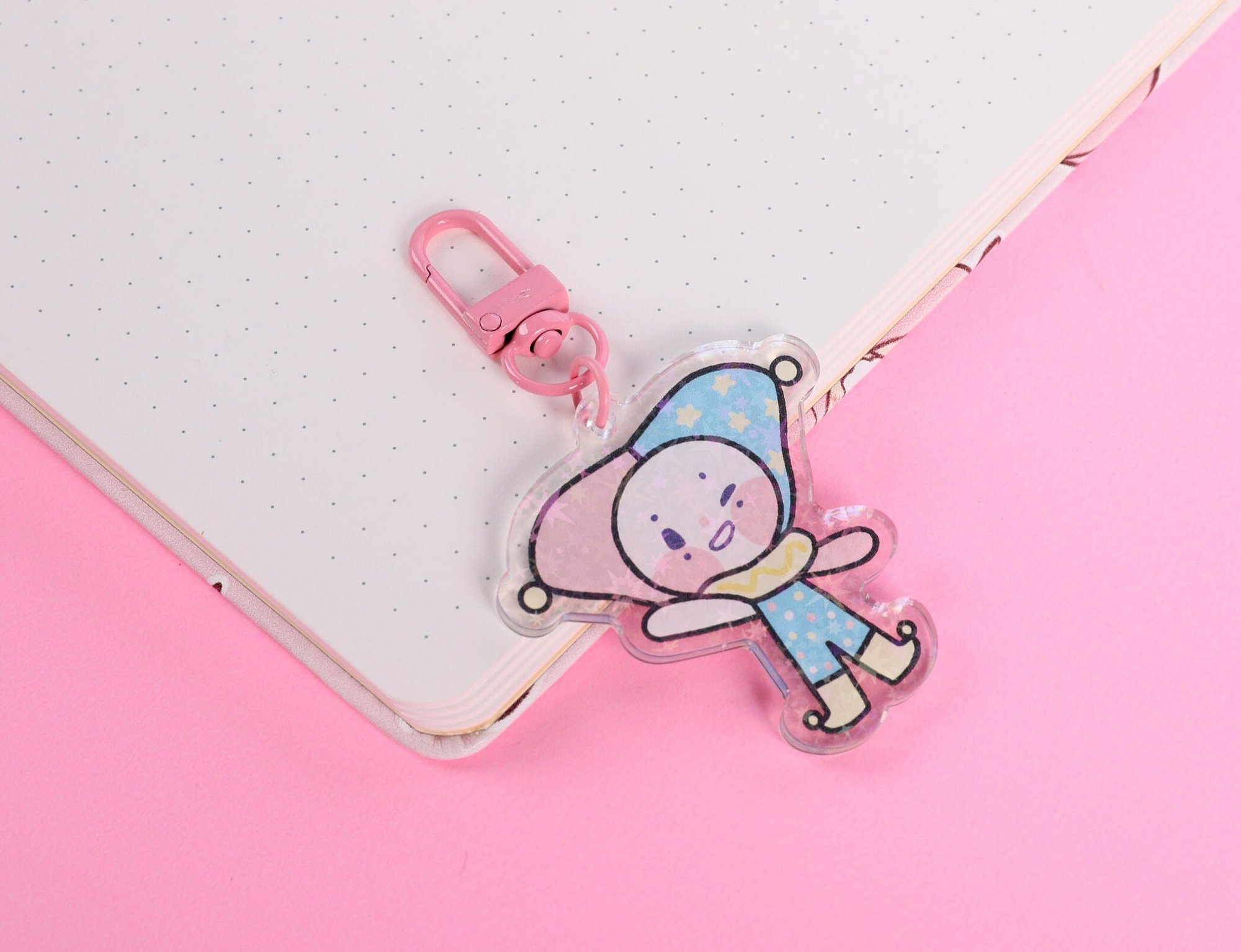 They keychains have a starry holographic effect on both sides and are 2 inches tall.