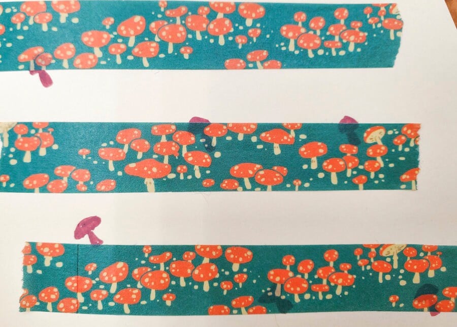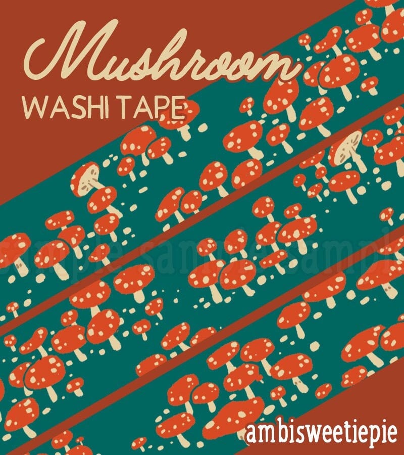 A cute washi tape featuring a a forest floor filled with mushrooms!