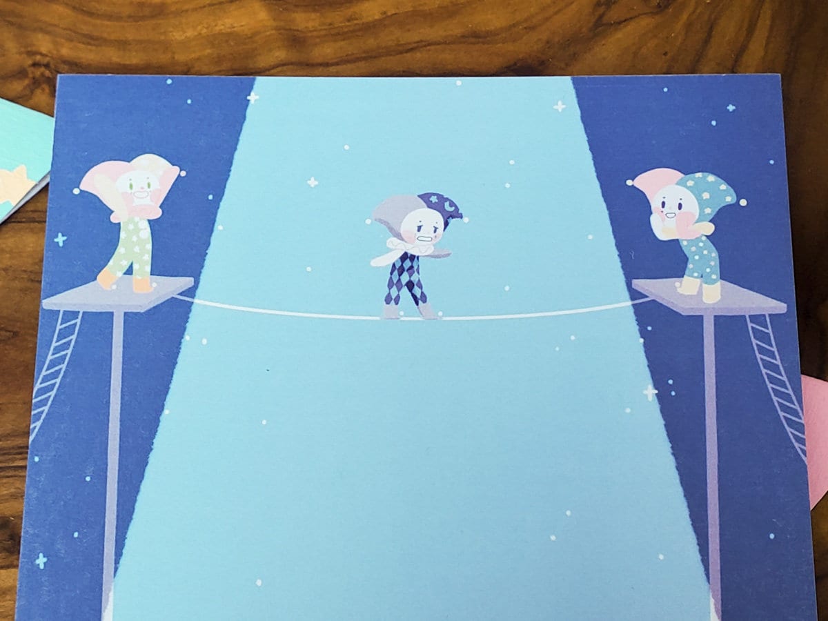 A notepad featuring the comfort clowns! Sympathy can definitely make it across!