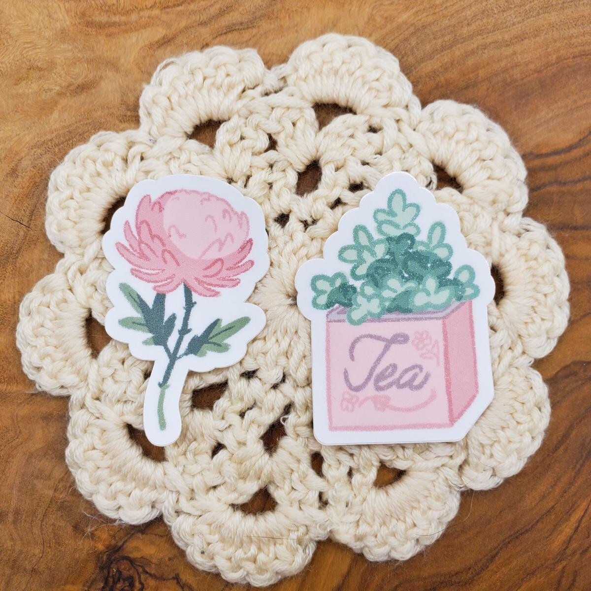 Tiny Cute Pink Vinyl Stickers - Succulent and Flower